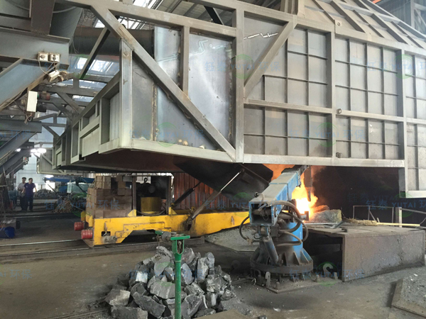 中頻爐冶煉煙氣除塵采用移動式半密閉的集煙形式,輔以液壓加料車加料、鋼包車出鋼,可實現(xiàn)煙氣在加料期、冶煉期、出鋼期全過程捕集。加料車的使用提高了加料作業(yè)效率,減少了人工操作。鋼包車的使用除滿足環(huán)保除塵效果外,降低了漏鋼穿爐等出鋼事故發(fā)生的概率,使中頻爐出鋼更為安全。