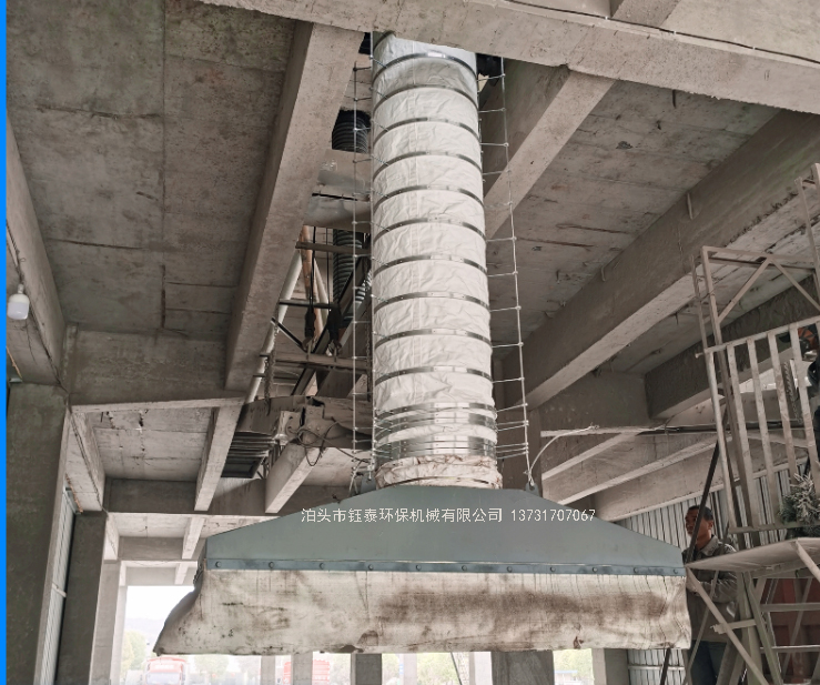 ?。?)水泥揚塵屬冷態(tài)粉塵空氣氣體,而冷態(tài)空氣再加上水泥粉塵的擴散混合,比重密度增大,根據(jù)水泥粉塵空氣的特殊性,要求吸塵罩設計時要有足夠大的負壓,要求吸塵罩口距離塵源800mm之間。