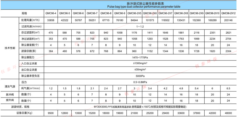 除塵清灰工作過程為:以一個袋為例,含塵氣體由進口處直接進入氣箱的袋室;由于有負壓風機的引力驅動作用,含塵氣體由外及里,自下而上,克服阻力,穿越濾袋到達上部箱體;粉塵就會被阻擋在濾器組件之外,小的顆粒被吸附在濾芯的表面,大的顆粒直接掉到下面的灰斗中;經(jīng)過過濾后的含有微塵的氣體在脈沖提升閥處匯集,之后從出風口排出,此時便是干凈的氣體。過濾狀態(tài)就是對含塵氣體進行除塵。當過濾工作達到一定時間(或阻力達到預先設定值),清灰過程開始。其工作過程為:控制器發(fā)出信號,使脈沖提升閥關閉,阻斷排氣;壓縮空氣脈沖閥開啟,以大于0.5MPa的壓縮空氣經(jīng)脈沖閥噴入凈氣室;并迅速膨脹入濾袋內,并產生振動作用,清除濾袋外側表面上的粉塵,粉塵掉落到灰斗。這個動作完成后(大約6~15s),壓縮空氣脈沖閥關閉,提升閥重新打開,該箱室的濾袋重新回到過濾狀態(tài)。