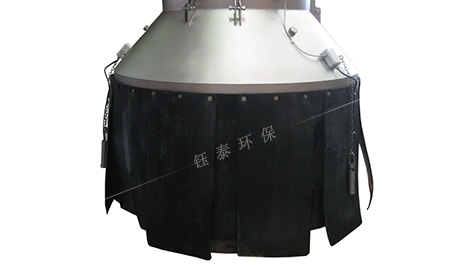 溜筒出口處的吸塵罩為多層結構,內(nèi)層為由皮帶膠組成的耐磨性能好、有一定相對硬度且具柔性的圍裙。皮帶膠圍裙主要用于緩解高速物料帶來的沖擊,緩沖高速氣流帶來的粉塵急速擴散。吸塵罩的皮帶膠圍裙也起支撐作用,可以避免由于負壓作用,外層帆布裙被吸扁,碰到料位檢測裝置導致誤報信號或者在溜筒出料口干擾物料流動。吸塵罩外層為雙重帆布圍裙,帆布裙的內(nèi)層長度需比皮帶膠圍裙大,需完全罩住皮帶膠圍裙。帆布裙外層比內(nèi)層略大,需覆蓋住溜筒出口處的物料。雙重結構主要用于控制粉塵外揚及外部風力作用將粉塵揚起擴散。整個吸塵罩在物料面和溜筒出口間構成一個相對密閉的空間,防止粉塵外溢。