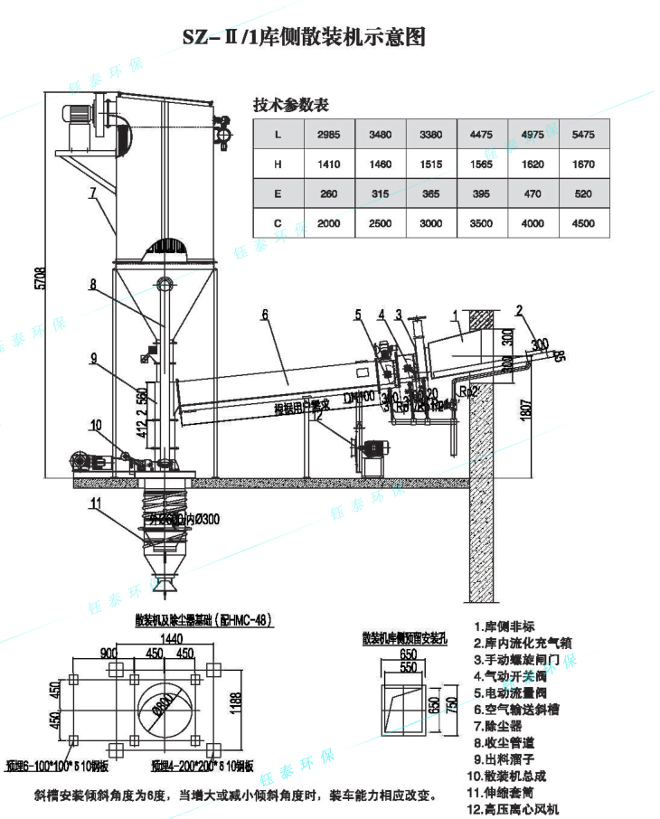 散裝機自帶除塵器,過濾面積為64m2,排塵濃度≤30mg/Nm³(滿足國家環(huán)保有關標準要求)。